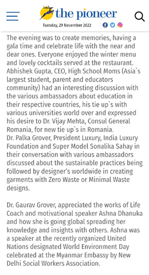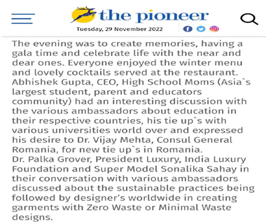 An exclusive sit down dinner was hosted with Ambassadors and Consul Generals from Jamaica, Serbia, Romania, North Macedonia to India and other family friends from the fashion industry like Super Models Sonalika Sahay, Rashi Rao, Megha Sachdeva, Life Coach Aashna Dhanuka to name a few.