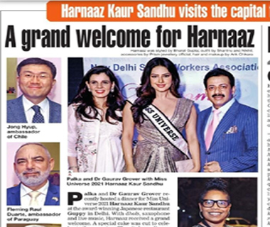 Mrs. Palka & Dr. Gaurav Grover hosts a homecoming dinner for Miss Universe - 2021, to Celebrate her historic win, as after 21 years India won the crown.