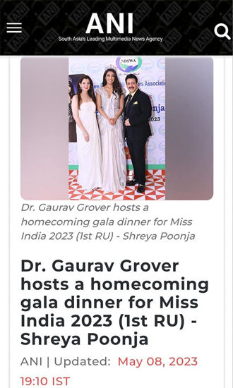 The evening was to Celebrate and Welcome Miss India 2023 - Shreya Poonja (1st RU) on her winning the crown.