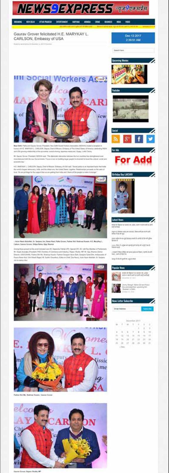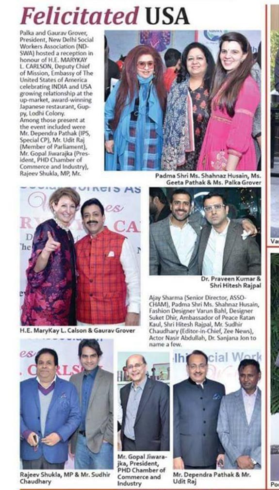 Gaurav Grover felicitated H.E. MARYKAY L. CARLSON, Embassy of USA
