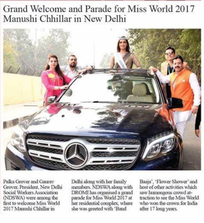 Grand Welcome and Parade for Miss World 2017 Manushi Chhillar